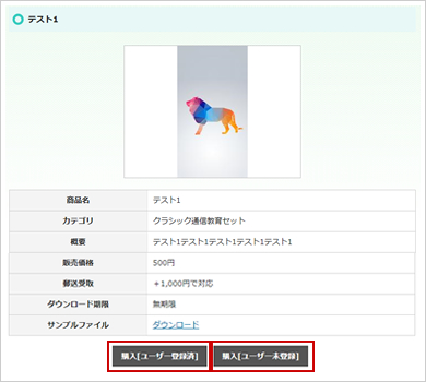 商品一覧ページより商品を選択し、「購入【ユーザー登録済】」か「購入【ユーザー未登録】」をクリックしてください。