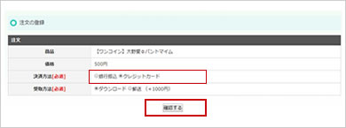 銀行振込かクレジットカードを選択し、【確認する】をクリックしてください。