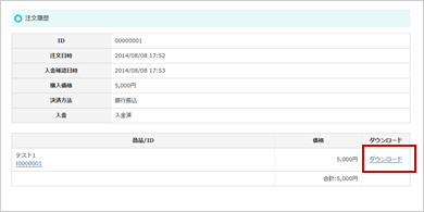 またログイン後、注文履歴からダウンロードページへアクセスもできます。